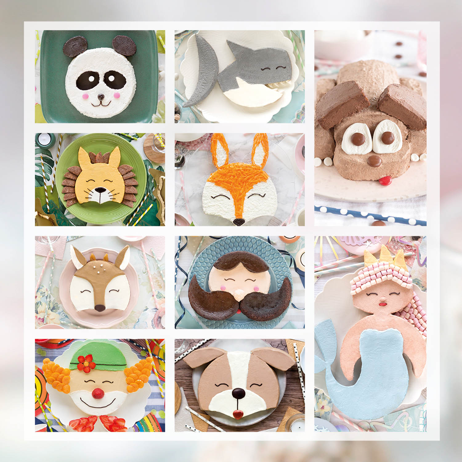 I boken hittar du bland annat hund, katt, ko, kanin, panda, apa, tiger och lejon. Även sagofigurer så som Dracula, enhörningar och dinosaurier finns med! Boken innehåller inga recept utan endast steg för steg och tillvägagångssätt för att montera tårtorna till de olika figurerna.